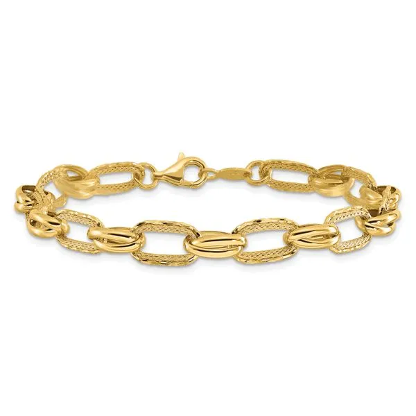 Leslie's 14K Polished/Textured/Diamond-cut Fancy Link Bracelet Image 2 Ask Design Jewelers Olean, NY